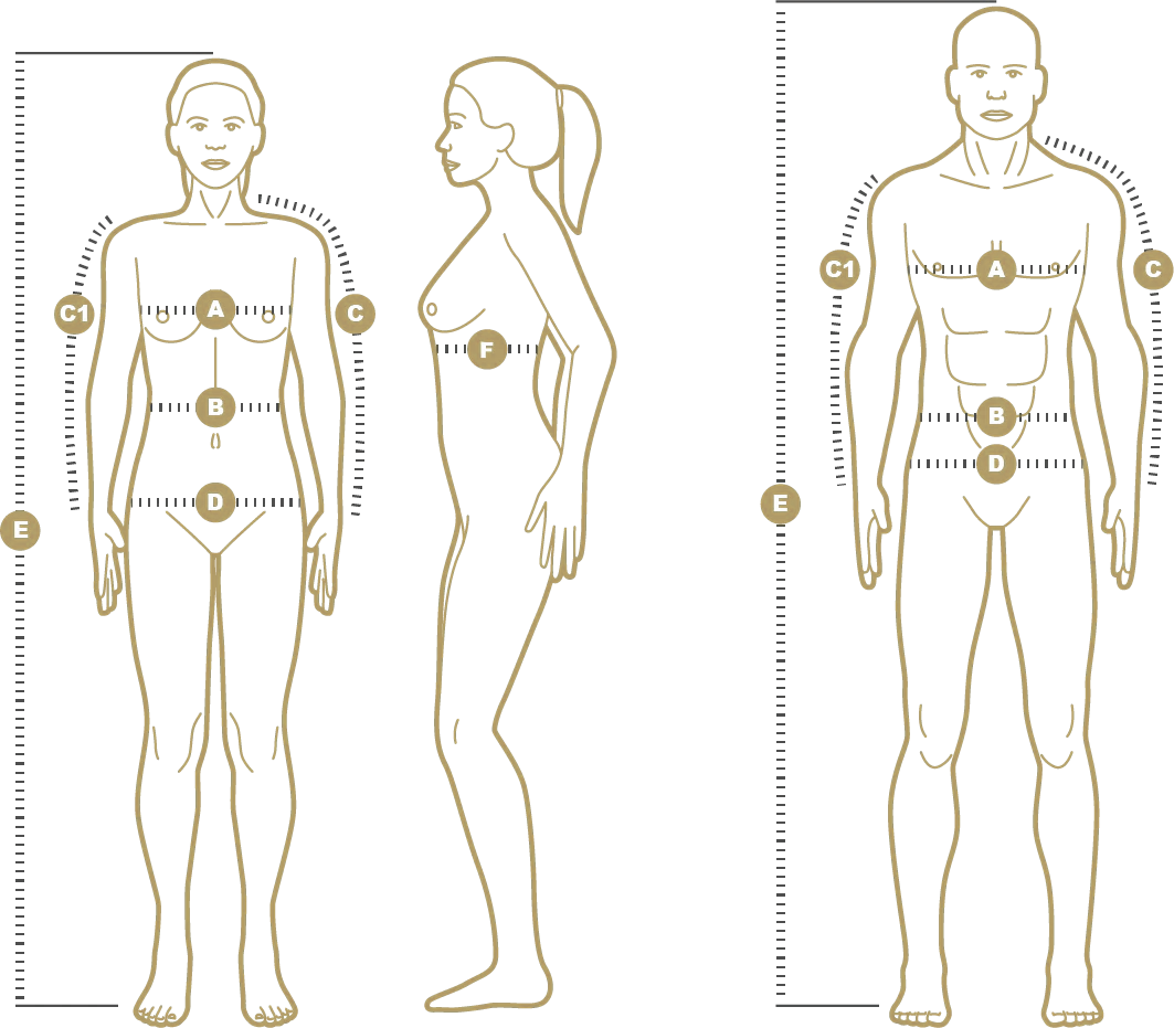 Die Maße der Tabelle sind als Körpermaße zu verstehen. Messe daher dicht am Körper.