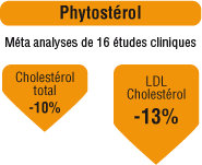 Les phytostérols à cause de leur similitude de la structure chimique entrent en compétition avec le cholestérol sanguin dans l'intestin, le rendent moins soluble et l’empêchent d’être absorbé.