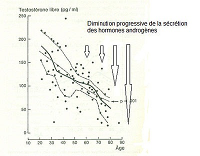 Évolution naturelle de la sécrétion de testostérone au cours de la vie.