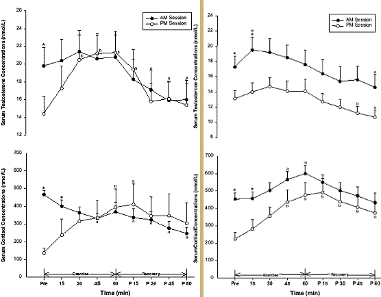 Variation des taux de testostérone en fonction de l’effort et du moment de la journée.