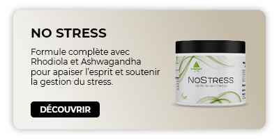 No Stress : Ce complément combine Rhodiola Rosea, Ashwagandha et Ginseng pour aider à mieux gérer le stress et réguler le cortisol.