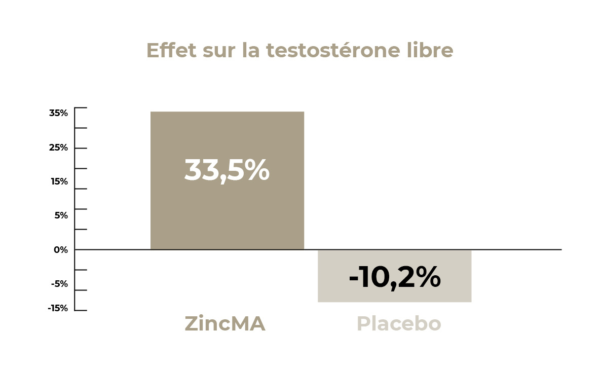 Dans une étude, le Dr Brilla rapporte que la supplémentation en ZMA améliorait la force et de taux de testostérone libre des joueurs de football NCAA avec un différentiel de 250% par rapport au groupe placebo.
