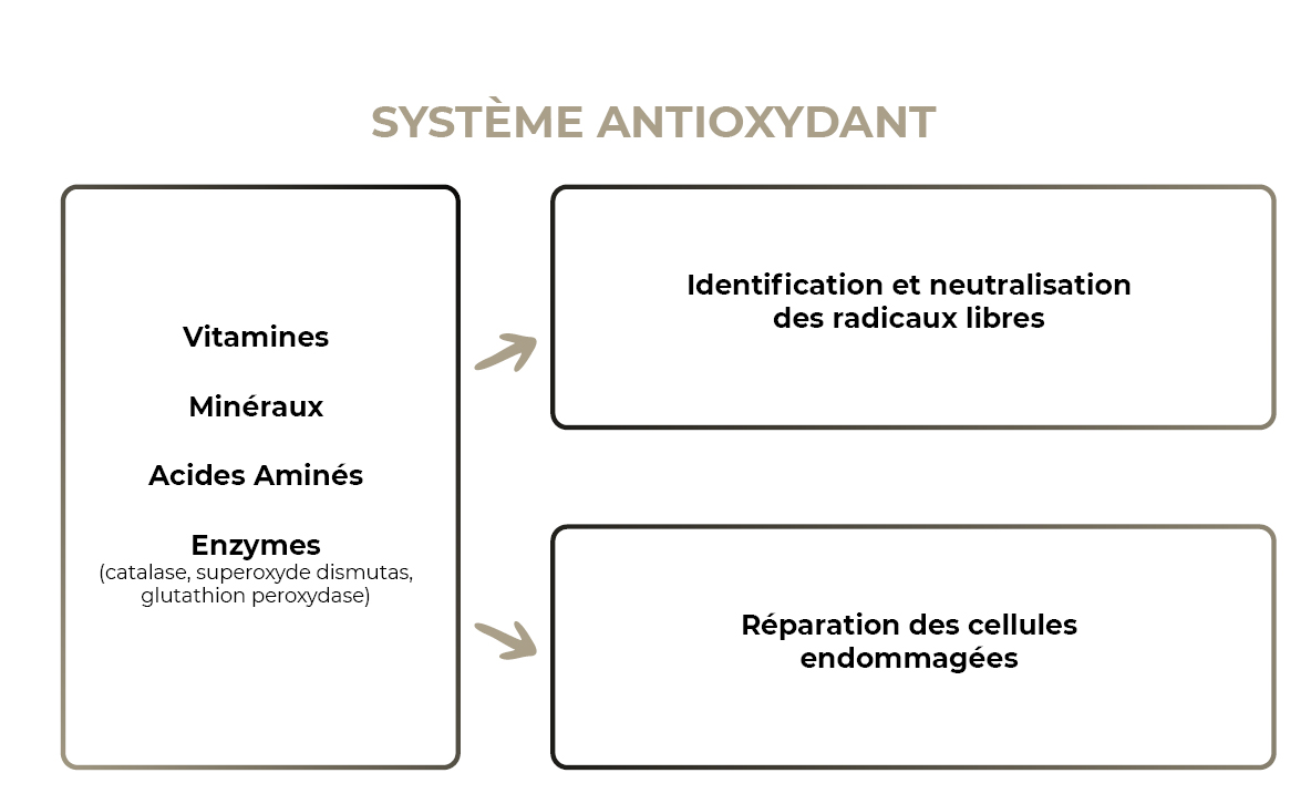 La supplémentation en antioxydants n'augmente pas les performances physiques comme le ferait le dopage, mais contribue à atteindre et maintenir le niveau optimal. Essayer de palier le stress oxyda tif par l'alimentation, seul , est impossible de nous jours d’où une supplémentation. Le zinc par exemple participe à la structure de la superoxyde dismutase et de la métallothionéine. La SOD assure l’élimination de l’anion superoxyde, première espèce toxique formée à partir de l’oxygène. Elle assure ainsi la première ligne de défense contre le stress oxydant. La SOD a besoin oligoélément comme le cuivre et le zinc (Cu-ZnSOD présente dans le cytosol) ou le manganèse (MnSOD présente dans la mitochondrie) pour fonctionner correctement. . La métallothionéine est une métalloenzyme riche en soufre largement distribuée. Cette protéine a pour rôle de piéger les métaux lourds et radicaux libres . C'est une barrière de protection contre les réactions oxydatives.